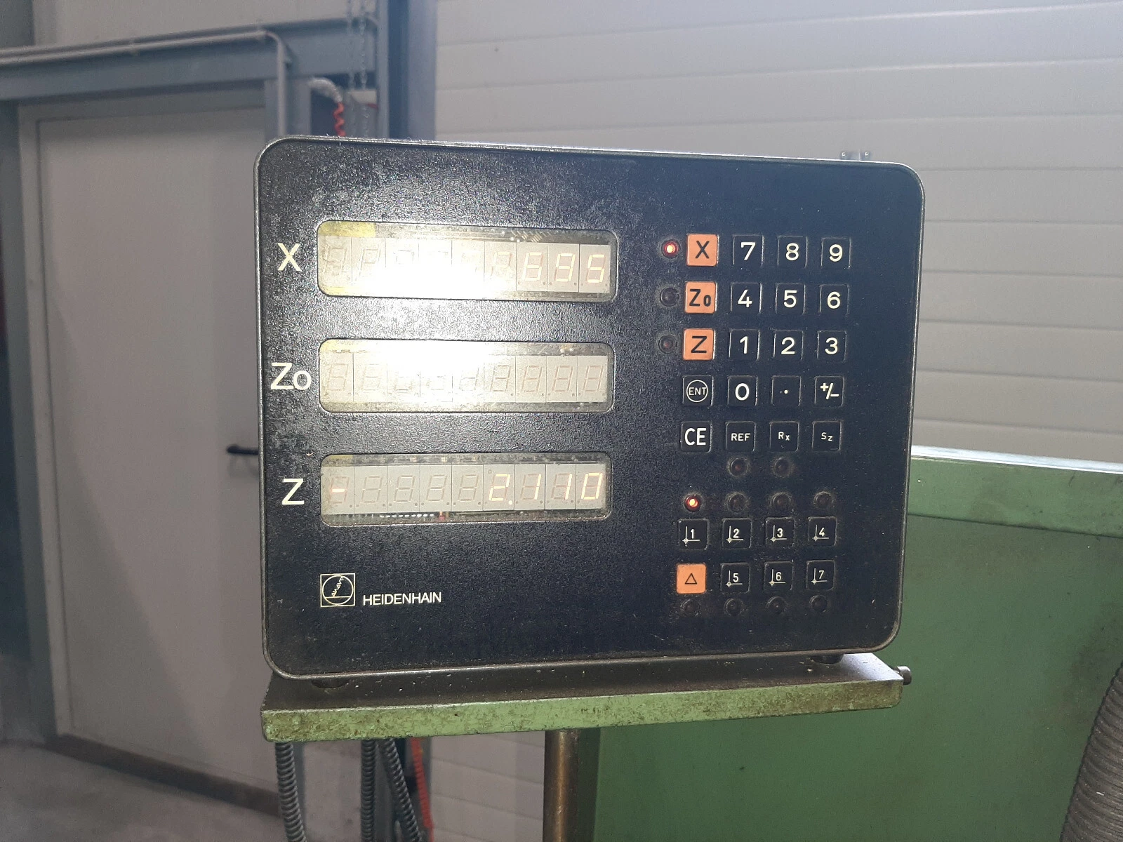 Heidenhain digital readout (which displays accurate measurements but repeatedly shows Error 53 in the Z-axis; all 3 glass scales are OK. There is probably something wrong with the unit itself, the Heidenhain VRZ770 is faulty).